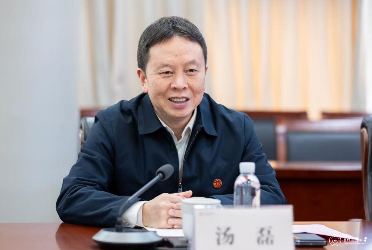 汤磊对温州医科大学的热情接待表示感谢,并就贵州医科大学建校情况、人才培养、学科建设及科研创新等方面进行系统介绍。他指出,温州医科大学在药学学科建设与科技成果转化机制方面形成的鲜明特色与成熟路径,与贵州医科大学立足西南、坐拥丰富喀斯特药用植物资源及民族医药研究基础的优势高度互补。期待与温医大围绕药学学科共建、科技成果协同转化等领域进一步拓展合作维度,探索东西部高校合作的创新模式。