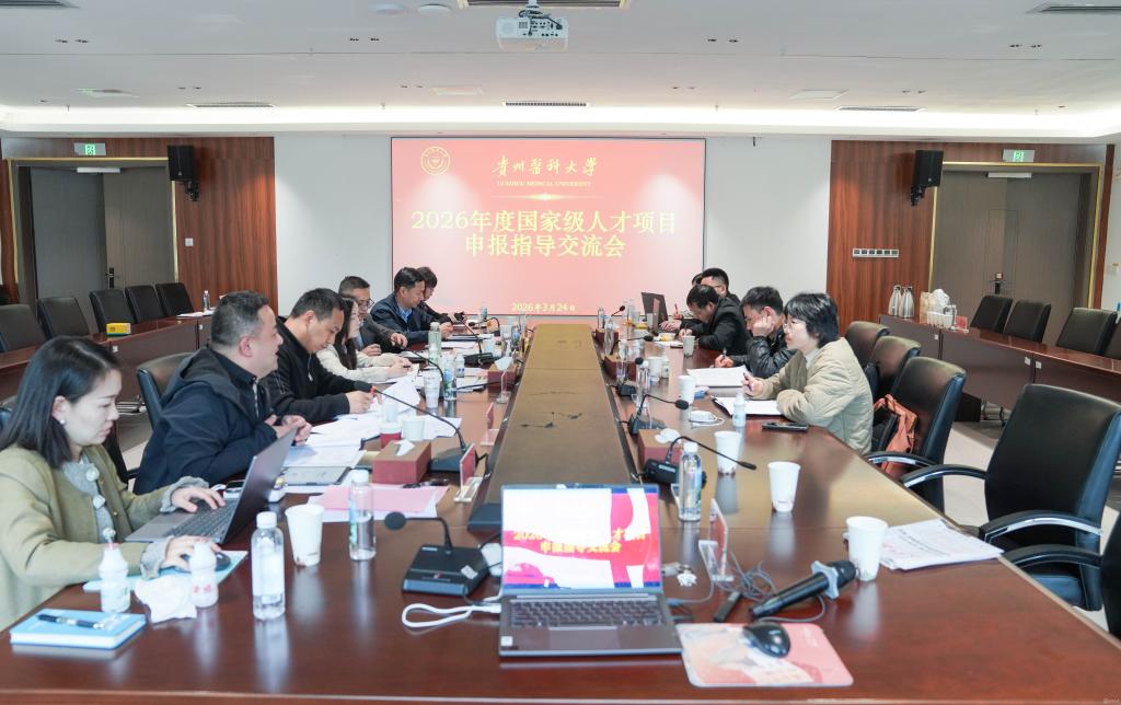 为精准助力我校青年教师申报国家级人才项目,提升申报质量,3月24日,我校2026年度国家级人才项目申报指导交流会在云漫湖校区知雨楼401会议室召开。副校长齐晓岚、潘卫东、罗成出席,人事处处长冯飞主持。人事处、教务处、科学技术处、研究生院主要负责人以及2026年国家级人才项目申报人员参加。